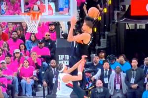 GIF-文班超级炸裂的空接扣篮 可惜没进 但有被犯规的嫌疑